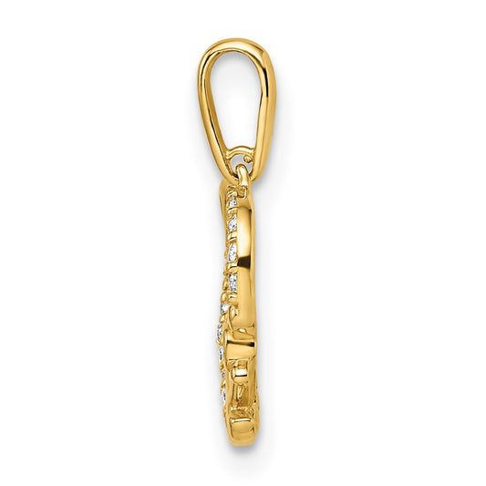 14k Polished CZ Heart w/Cross Dangle Pendant