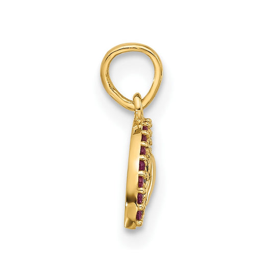14K 3D Ring with Red CZ Charm