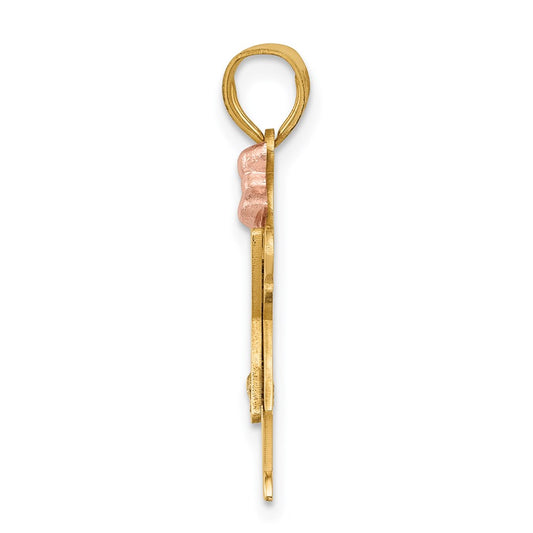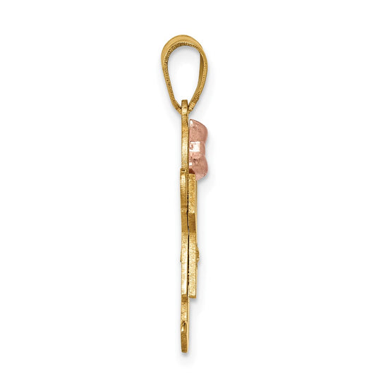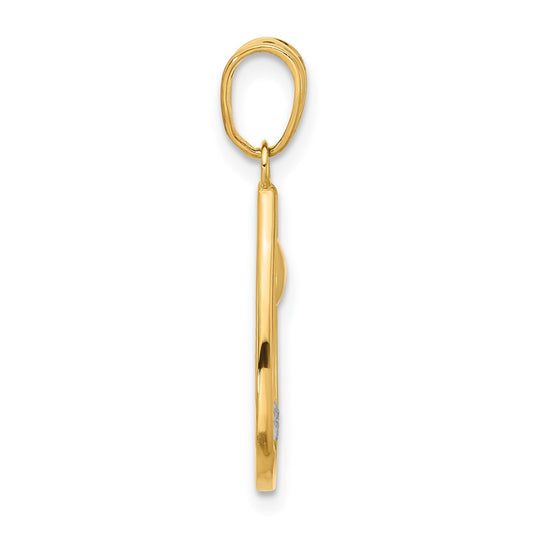 14k Polished Diamond Pattern Hollow Cross Pendant
