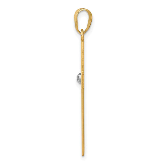14K White Gold Diamond Fleur De Lis Cross Pendant