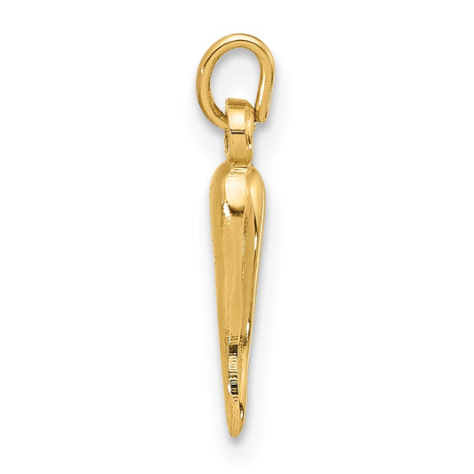 14k White Gold Solid Polished 3-D Large Italian Horn Charm
