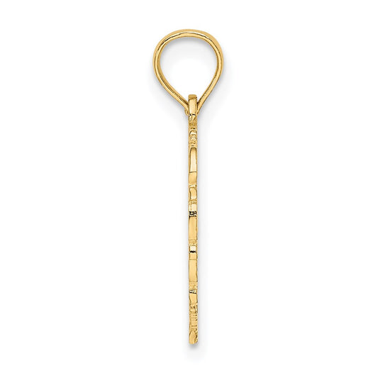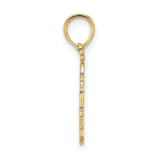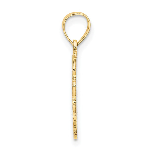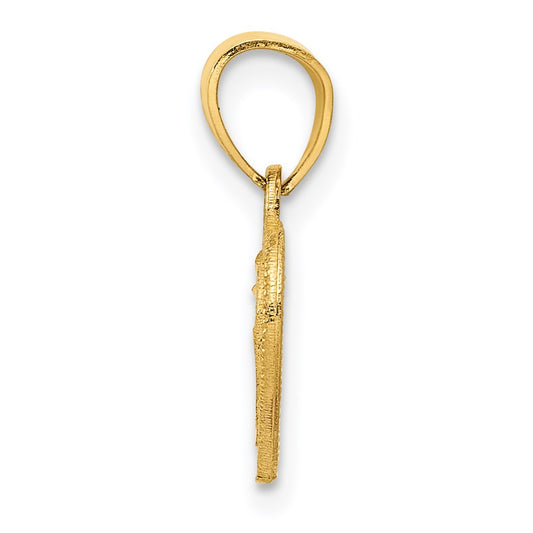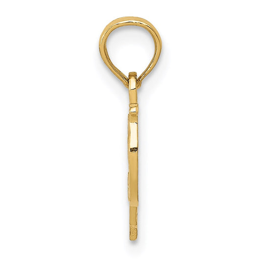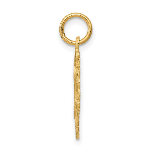 14k w/Rhodium Diamond-cut Textured Heart Charm