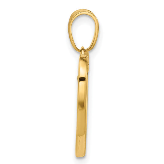 14k & Rhodium Hollow Polished 3D Reversible Heart Charm