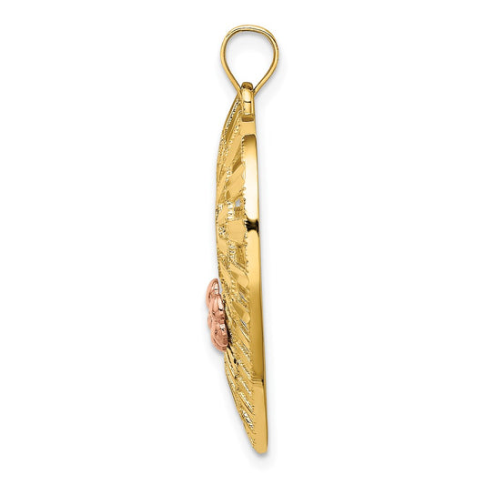 14K Rose-plated and White Rhodium Diamond-cut Branches in Heart Pendant