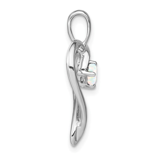 14k White Gold Created Pink Sapphire and Diamond Heart Pendant