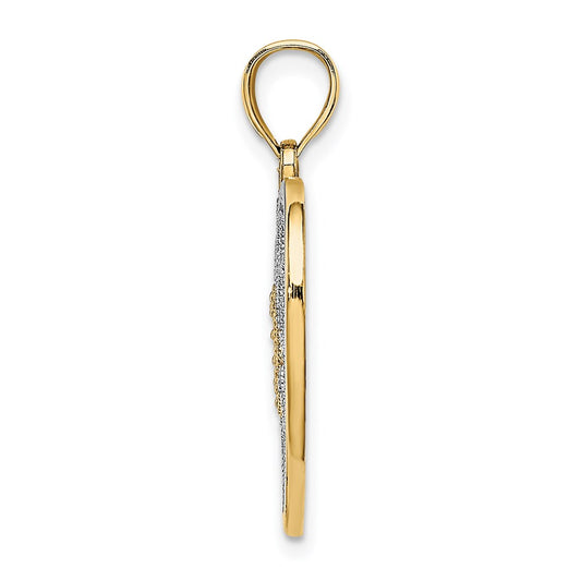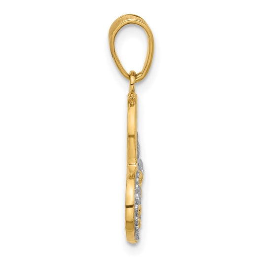 14K and White Rhodium Diamond-cut Heart Pendant