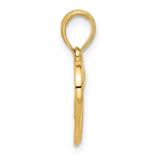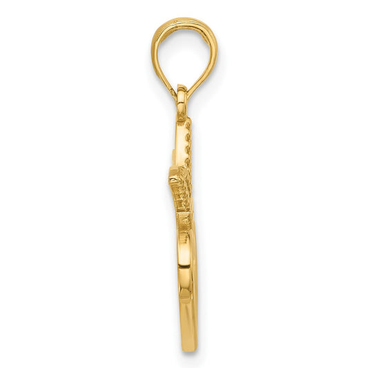 14K Cross w/ Textured Heart Edges Design Charm