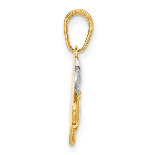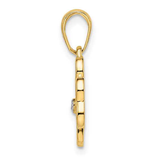 14k and White Rhodium Polished and D/C 4-Leaf Clover Pendant