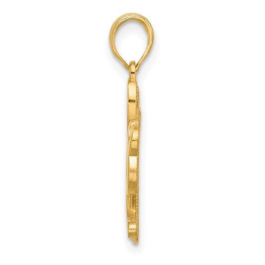 14k Polished and Textured 4-Leaf Clover Pendant