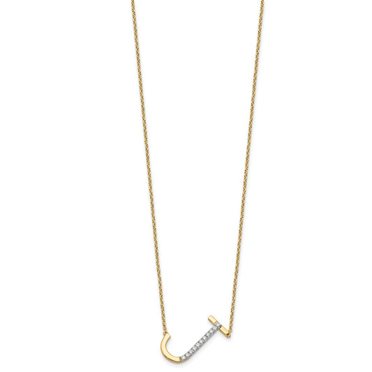 14K Sideways Diamond Initial J Necklace