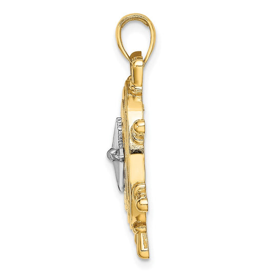 14K Two-tone Ship's Wheel w/ Nautical Compass Charm