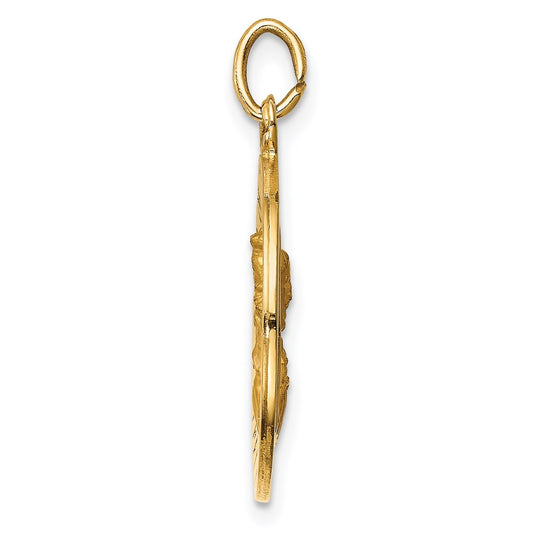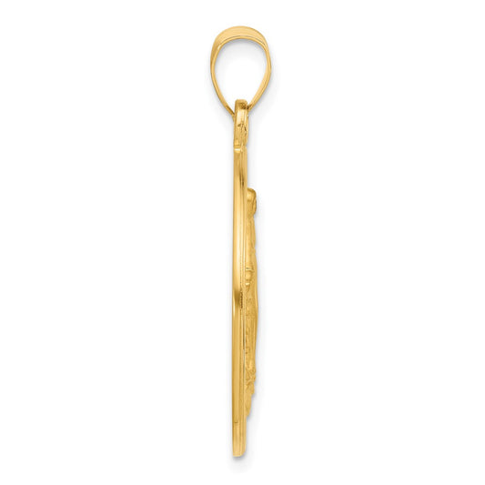 14k Solid Polished/Satin Medium Round St. Christopher Medal