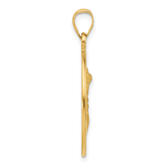 14k Polished and Satin Hollow Jesus Face Cross Pendant