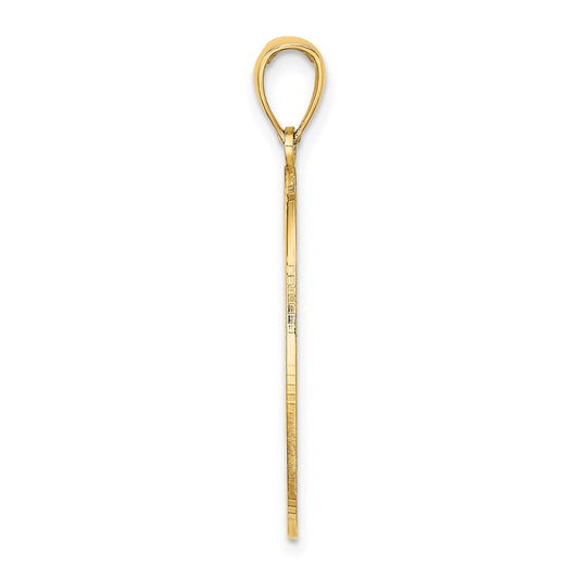 14K Gold Polished and Textured 2-D Palmetto Palm Tree Pendant