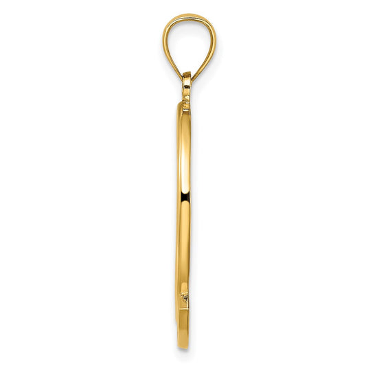 14KY Polished Script Filigree Letter F Initial Pendant