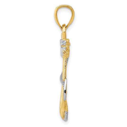 14K w/ Rhodium Anchor W/Rope Pendant