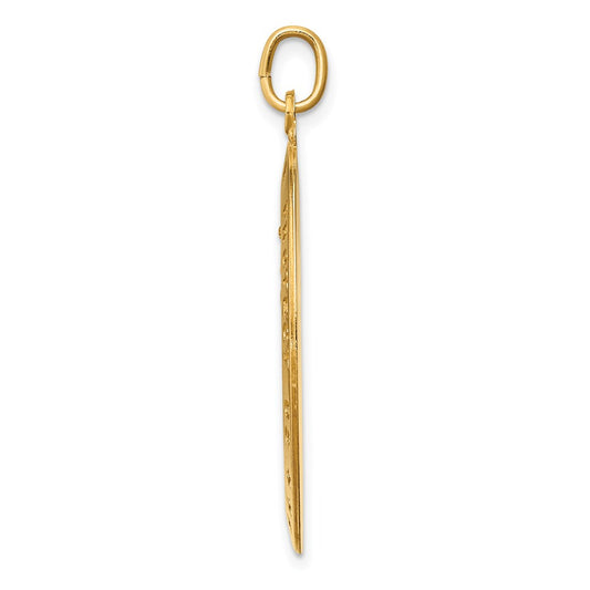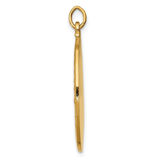 14k Polished Diamond Pattern Hollow Cross Pendant