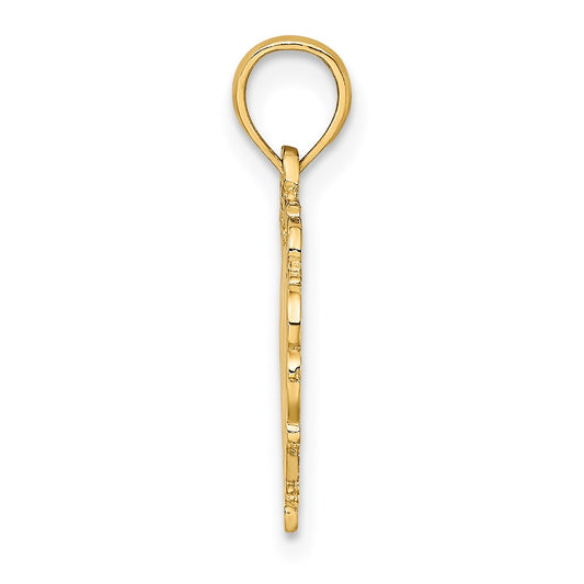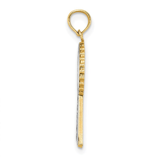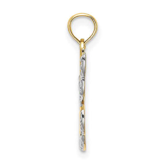 14K w/Rhodium Polished/Textured Cut-Out HOPE Angel Charm