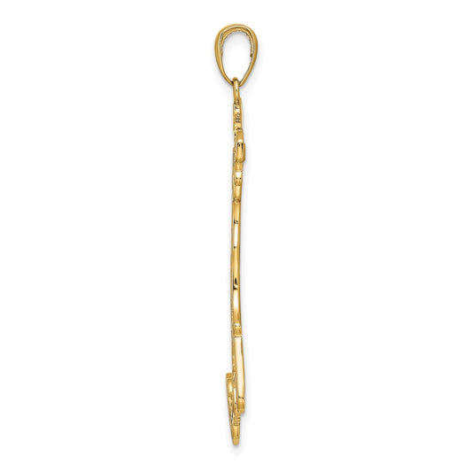 14K Polished Textured INRI Crucifix Fleur de Lis Pendant