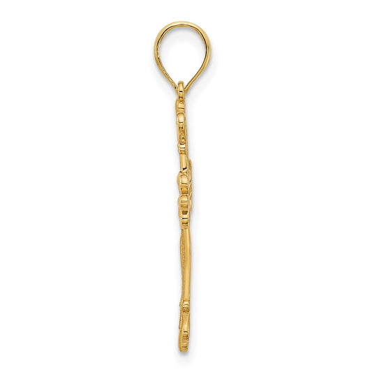 14k Polished and Grooved Hollow Diamond Cross Pendant