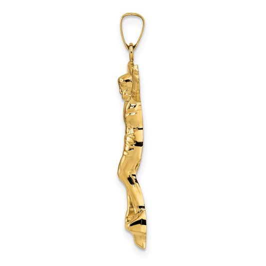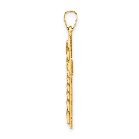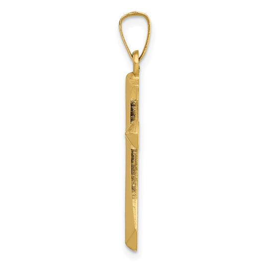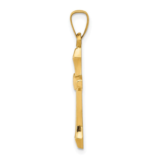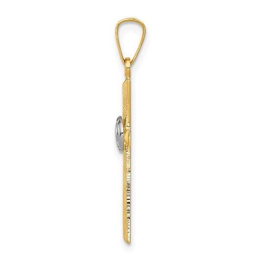 14k Two-Tone Textured and Polished INRI Crucifix Cross Pendant