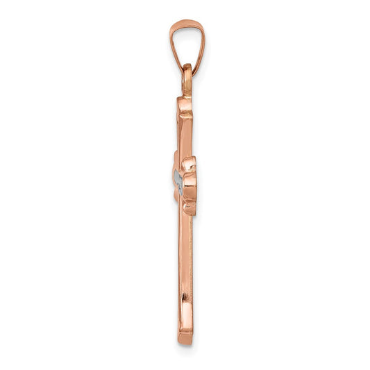 14K Rose Gold W/ White Rhodium Cross Pendant