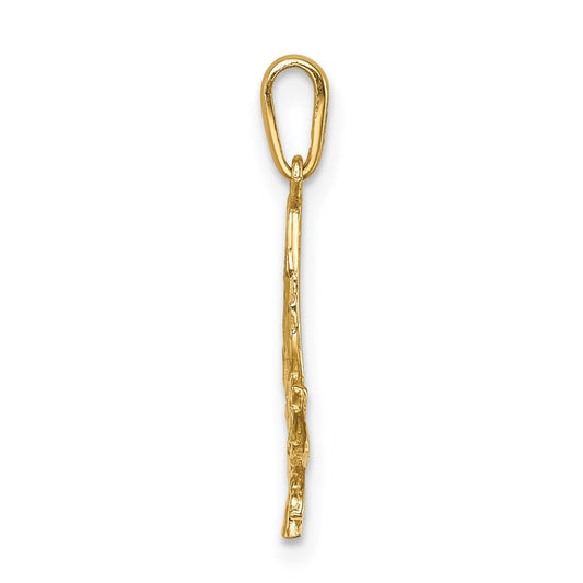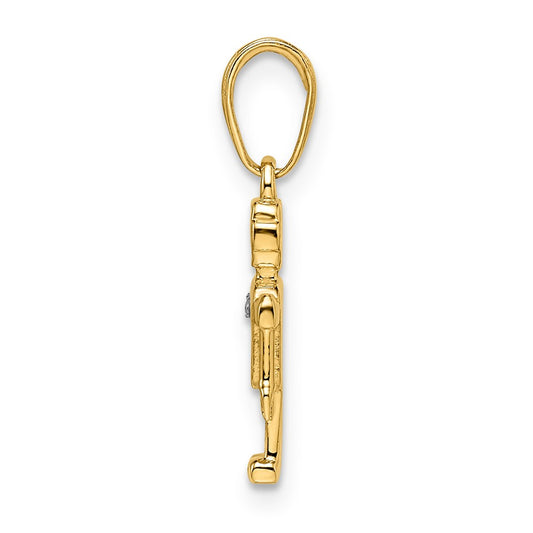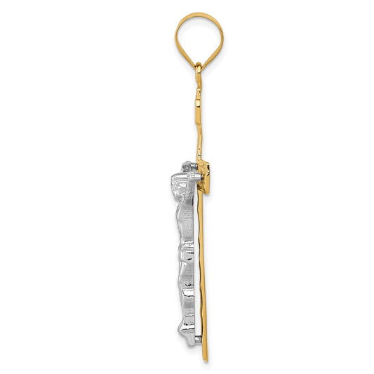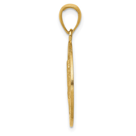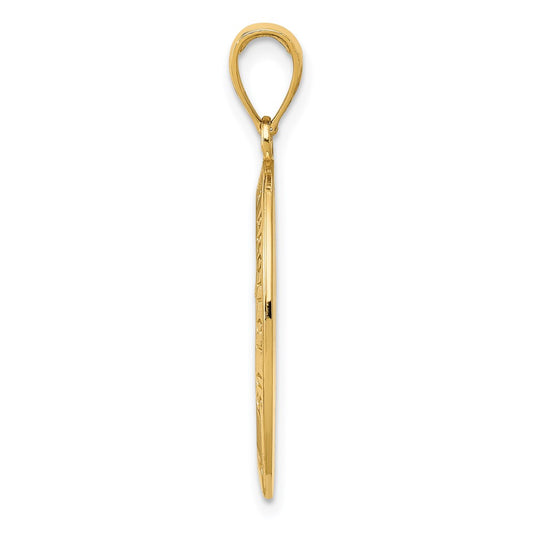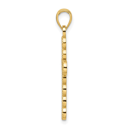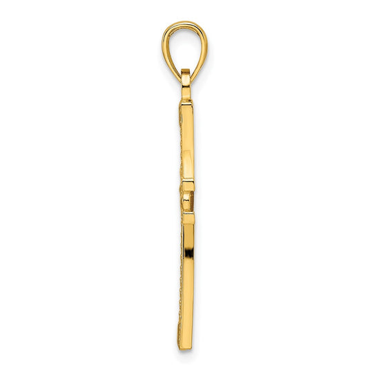 14k Polished and Textured Solid Diamond Shape Cross Pendant