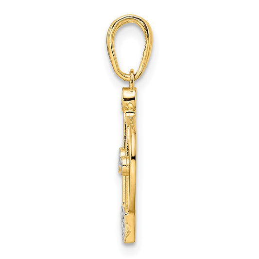 14k and White Rhodium Diamond-cut Fancy Butterfly Pendant