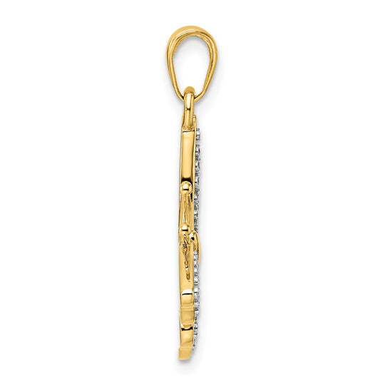 14k and White Rhodium Diamond-cut Filigree Dragonfly Pendant