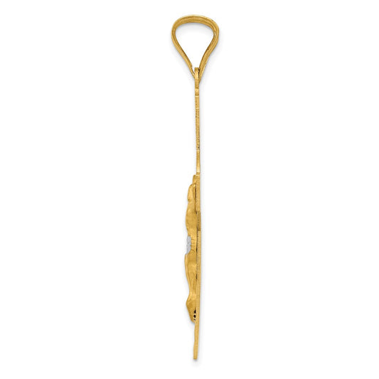 14K w/Rose and White Rhodium Iona Crucifix Cross Pendant