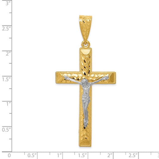 14k Two-tone Diamond-cut Crucifix Pendant