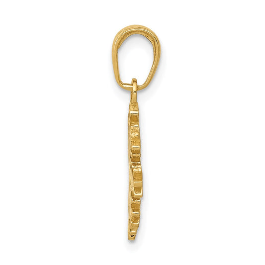 14K with White Rhodium Diamond Cut Turtle Pendant