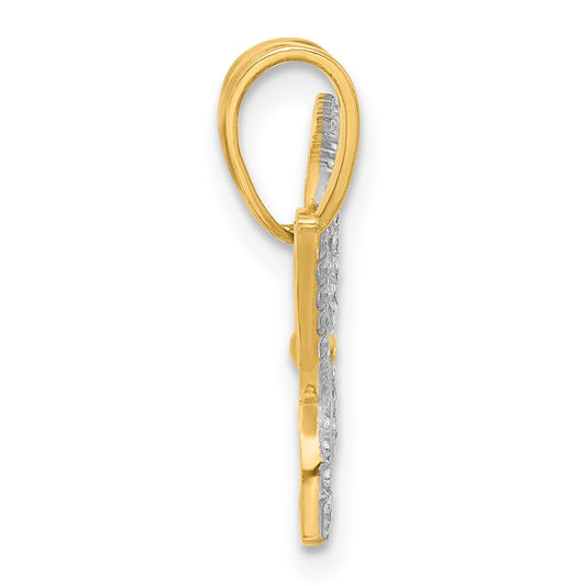 14K Two-tone Textured and Polished Latin Cross w/ Hearts Pendant