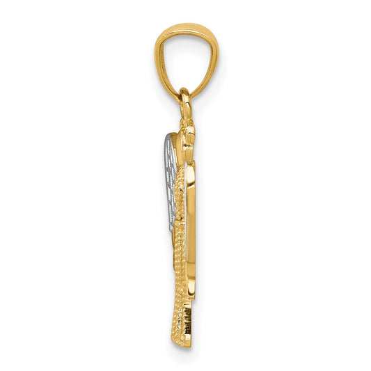 14K and White Rhodium Polished and D/C Flower Butterfly Pendant