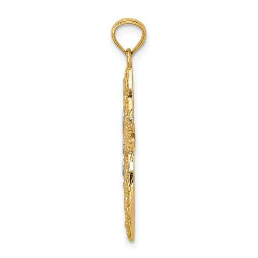 14k and White Rhodium Diamond-cut Filigree Turtle Pendant
