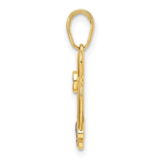 14k and White Rhodium Diamiond-cut Heart Key Pendant