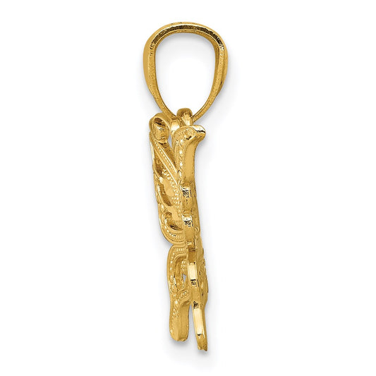 14K Polished Textured Mariners Crucifix Rope/Wheel Pendant