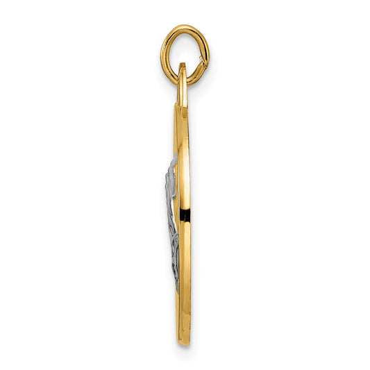 14k with Rhodium Satin and Polished St Anthony Medal Circle Pendant