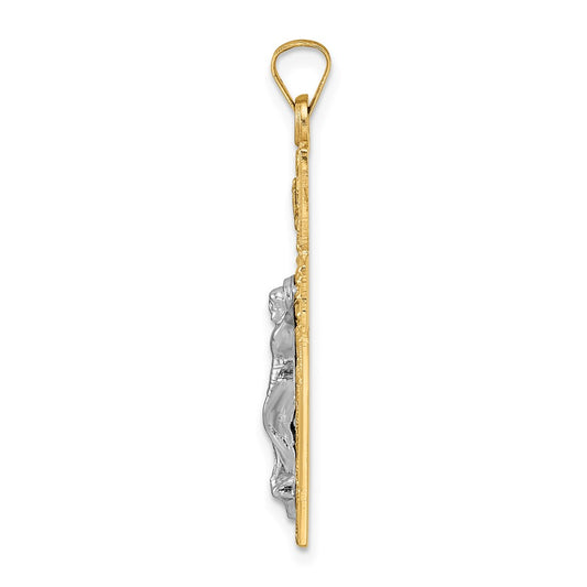 14k Two-tone Polished Solid INRI Crucifix Pendant