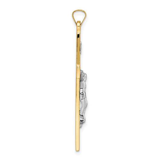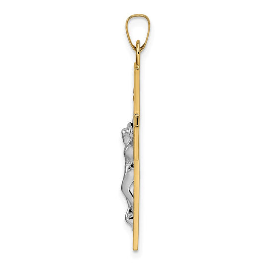 14k Two-tone INRI Hollow Crucifix Pendant