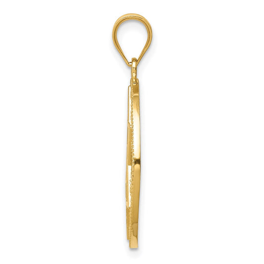 14k White Gold Polished and Satin Hollow Jesus Face Disc Pendant