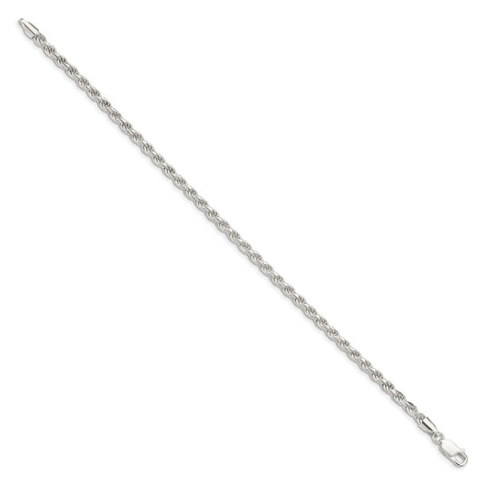 Sterling Silver 2.5mm Diamond-cut Rope Chain Anklet
