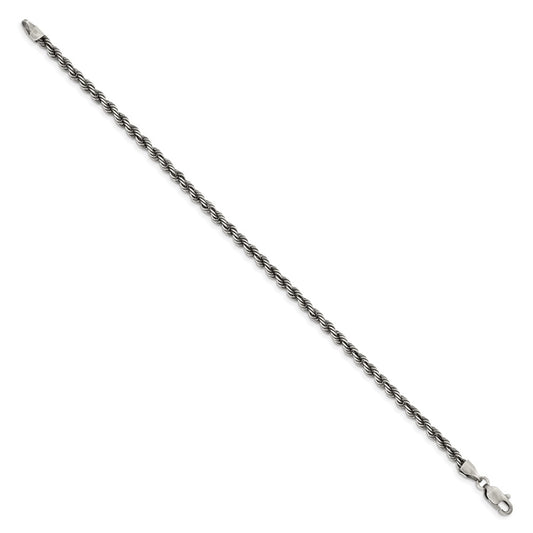 Sterling Silver Ruthenium-plated 3mm Rope Chain
