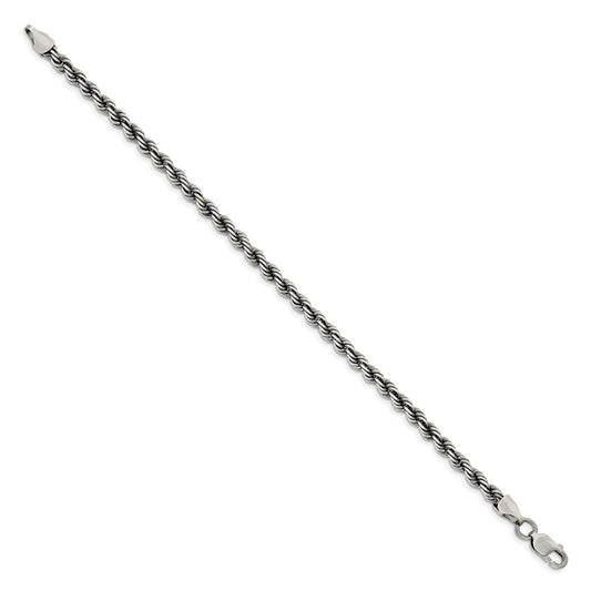 Sterling Silver Ruthenium-plated 4mm Rope Chain