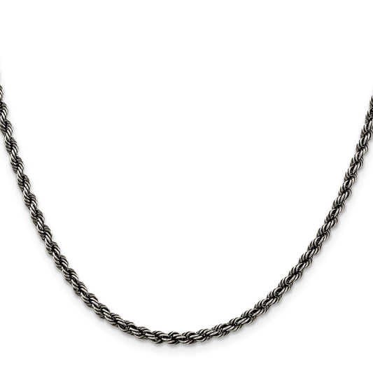 Sterling Silver Ruthenium-plated 3mm Rope Chain