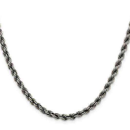 Sterling Silver Ruthenium-plated 4mm Rope Chain