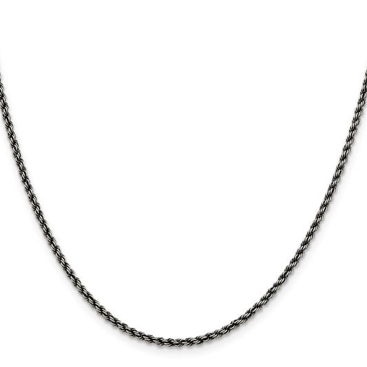 Sterling Silver Ruthenium-plated 2.5mm Rope Chain
