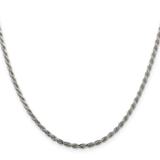 Sterling Silver Rhodium-plated 2.5mm Solid Rope Chain