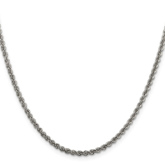 Sterling Silver Rhodium-plated 3mm Solid Rope Chain