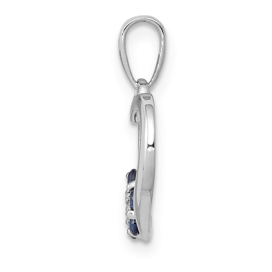 14k White Gold Diamond and .31 Sapphire Heart Pendant